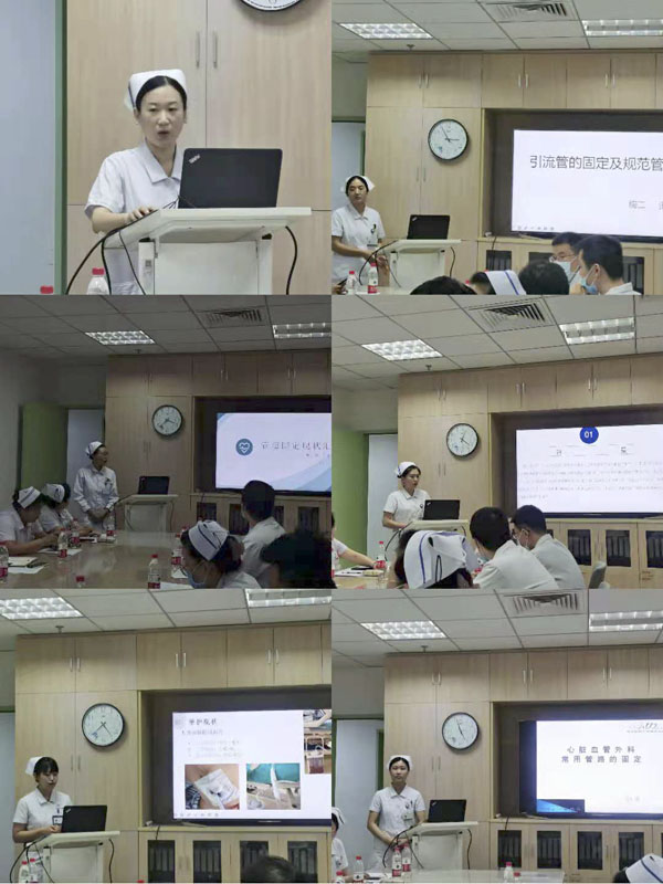 在讨论会上,质控护士分别就非计划拔管的原因进行了分析,展示了科室常见胃管、鼻肠管、腹腔引流管、胸腔引流管的维护现状,并提出了各个管路维护、固定中存在的疑惑和问题。针对提出的问题,质控医师从医生角度就外科术后管路留置的必要性、不同管路的观察要点与现场护理专家进行了分析与讨论。医护人员对如何做到管路的妥善固定、通畅引流、标识规范、安全舒适等方面达成共识。