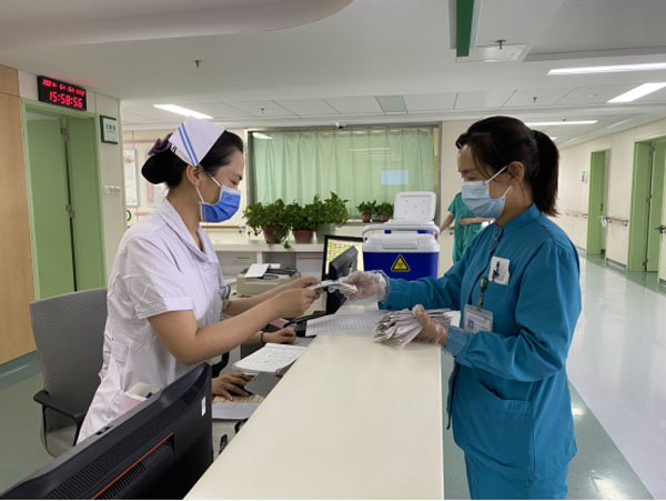疫情常态化防控期间,为了方便患者,科室工作人员为住院患者开展门诊医技检查预约单送达服务,预约单直接送达住院科室,减少了患者家属排队等待的时间。