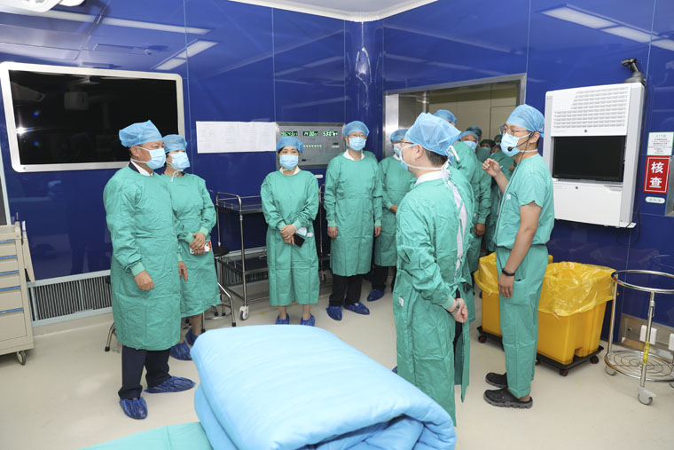 党委书记单保恩,副院长刘运江、彭利的陪同下对院区环境、检验科、肾内科、重症医学科、手术室以及《非凡历程——果冻传媒