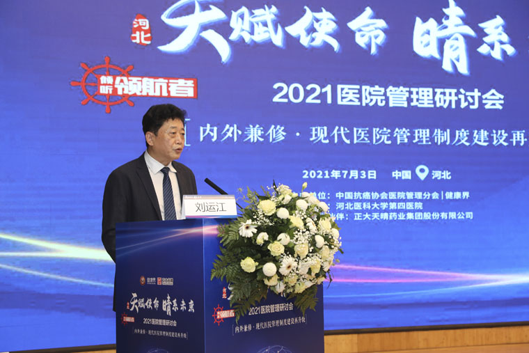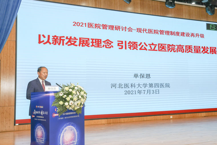 党委书记单保恩以《以新发展理念,引领公立医院高质量发展》为题,从公立医院实现高质量发展;加强学科建设,满足患者和社会需求;肿瘤医院学科建设的思考;做好区域医疗中心和区域肿瘤中心建设等4个方面进行了重点阐述。随后,北京大学肿瘤医院党委副书记薛冬,天津市肿瘤医院副院长张晓亮,内蒙古医科大学附属医院院长赵海平就《以DRG为抓手驱动医疗质量和患者安全》、《互联网医院创新服务模式探索与实践》、《常态疫情防控时代下互联网+医疗健康的探索与实践》进行主题演讲。