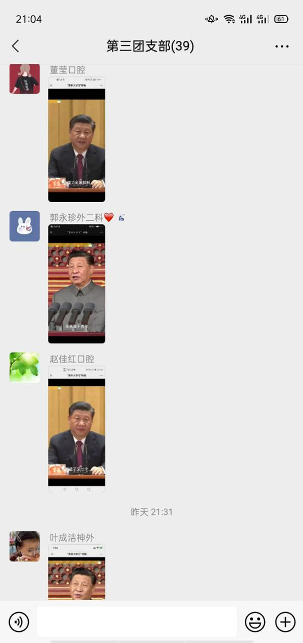 大家纷纷表示,习近平总书记的讲话令人心潮澎湃、备受鼓舞,要牢记总书记的深情寄语,以实现中华民族伟大复兴为己任,增强做中国人的志气、骨气、底气,不负时代,不负韶华,不负党和人民的殷切期望。在未来的工作学习中要不忘初心,坚定信念,用自己的实际行动向伟大的共产党献礼,践行“请党放心、强国有我”的青春誓言。