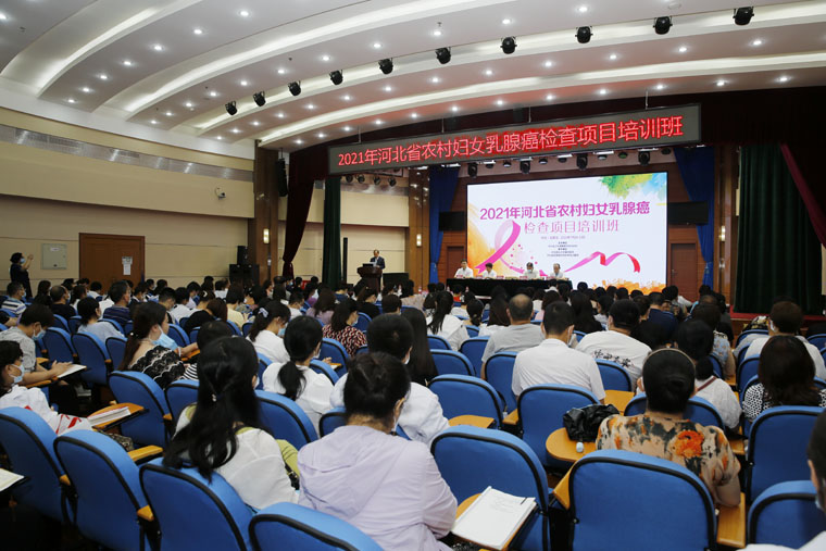 和河北省乳腺癌防控技术培训基地承办的河北省2021年农村妇女乳腺癌检查项目培训班召开。来自全省65个县妇幼保健院的152位从事乳腺癌筛查和诊治的医务人员参加。