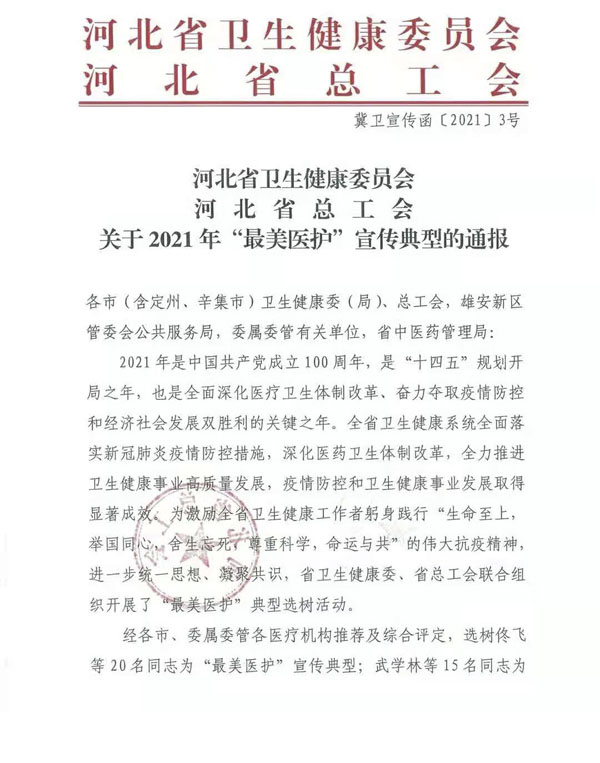 近日,由河北省卫生健康委、省总工会联合组织的“最美医护”典型选树活动揭晓,果冻传媒