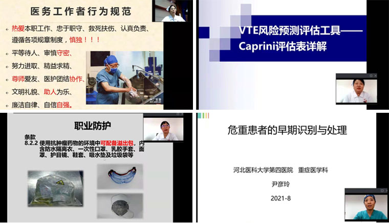 之后,护理部主任、护士长及护理骨干组成专家团队,重点培训医院护理工作概况、护士行为规范、核心制度、护理不良事件管理、护理风险识别、人文沟通、护士成长经历分享、危重患者的早期识别与处理、化疗药相关知识、抢救车及抢救药的使用、针刺伤等职业暴露预防、住院患者跌倒、压力性损伤及VTE的风险评估及预防等方面内容。