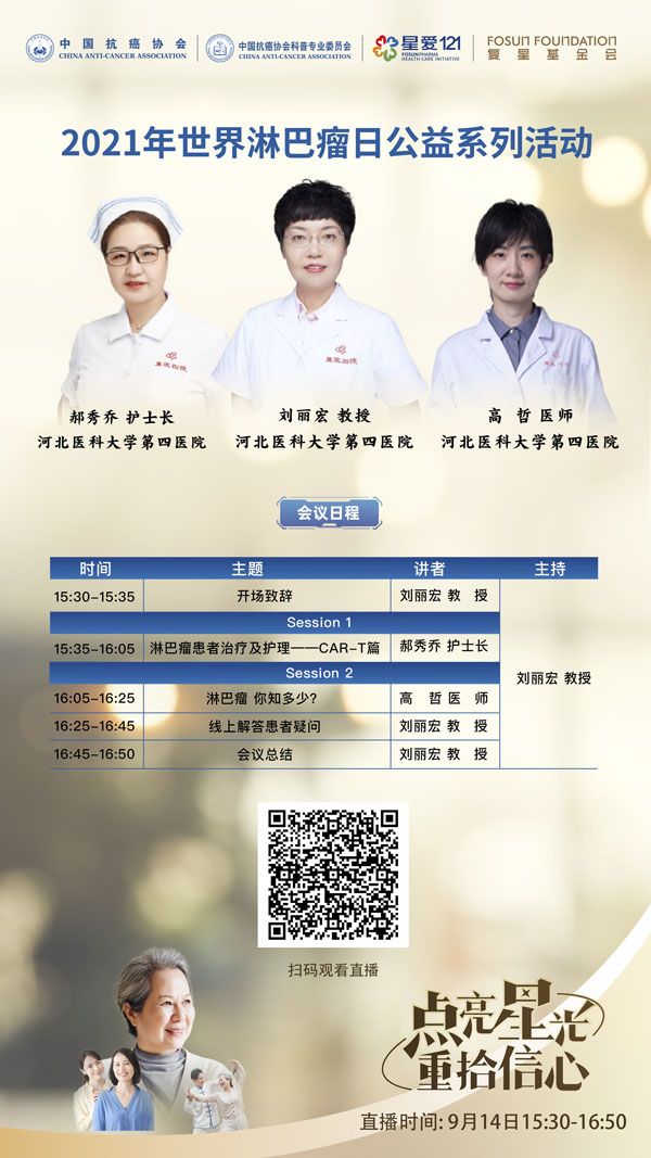 血液内科还将于9月14日举行线上科普宣教活动,刘丽宏主任、高哲医师、郝秀乔护士长届时将进行科普讲座并答疑解惑。