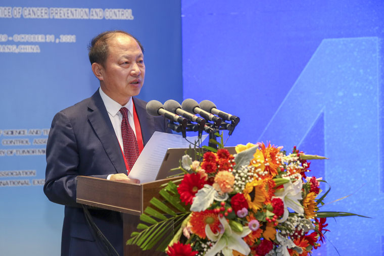 党委书记单保恩教授致开幕词,他指出,当前癌症得到了广泛关注,癌症的防治技术也有了质的飞跃,本次大会邀请到了诸多肿瘤防治领域的知名专家线上指导,对进一步加强肿瘤防治领域的国际交流合作,促进肿瘤领域多学科沟通转化具有重要的意义。河北省科技厅党组副书记、副厅长郭玉明,河北省卫健委一级巡视员尹爱东分别致辞。