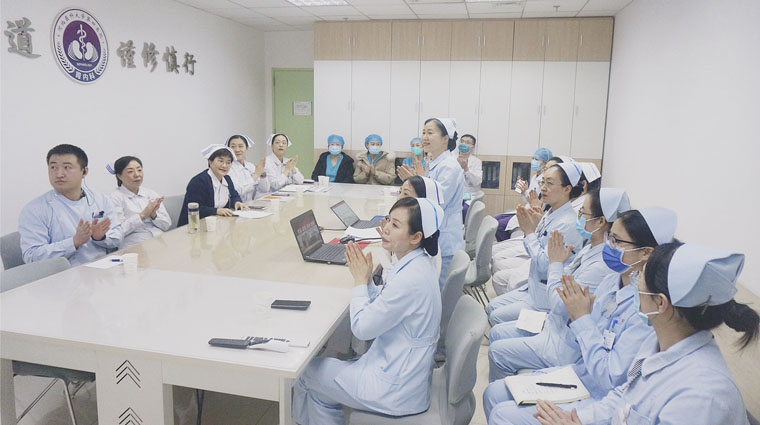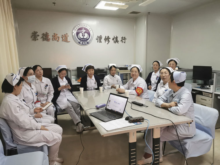 内科系统护理管理者的管理水平,1月5日,护理部举办了以“团结 奉献 传承 创新”为主题的2021年内科系统护士长管理经验分享会。会议采用两个院区同步视频的方式进行,护理部主任李来有,副主任陈璐、赵晓燕、秦明祎,护理专家张彦茹、刘月芹、耿同会担任点评专家,李同妙、李翠珍护士长担任主持,21名护士长及6名护理管理进修人员参加。