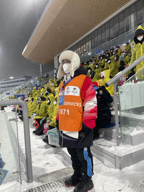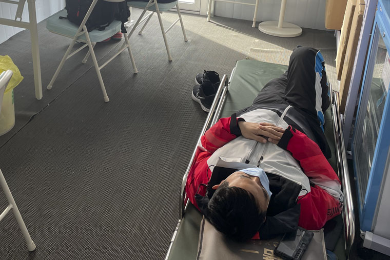 由于场馆吃饭时间是固定的,何宏涛副院长经常工作忙得错过了就餐时间,周围又没有可采购的商店,他只能饿着肚子回到驻地,慢性胃炎犯了,就吃一片药继续工作。赵孝先处长同样日夜操劳,暴瘦10几斤,且自身患有糖尿病,身体经受着很大的考验。对于这些,两位“大家长”却从不在意,满心装着的都是对队员们的心疼和爱护,“为了保障冬奥,大家放下自己的手头工作,外科医生的手术不能做了,内科医生的病人不能继续管了,在赛时队员们每天要提前一个小时到岗,赛后一个小时才可以撤离,工作期间需要全程穿着防护服,为了不上厕所,早晨不喝水,从早晨7点一直坚持到中午2点倒班……”