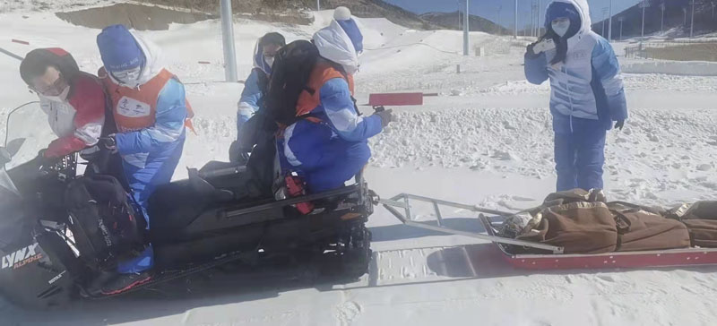 冬奥医疗保障队为冬残奥会医疗保障进行的前期准备情况给予了充分肯定,并对雪地摩托布点位置和赛道施救路线等工作进行指导。