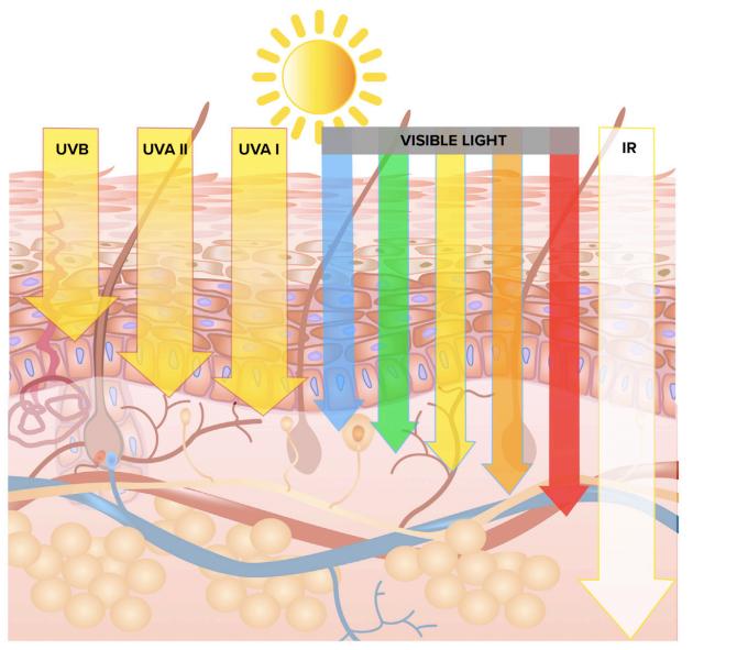 不同波段的光在皮肤上的作用深度