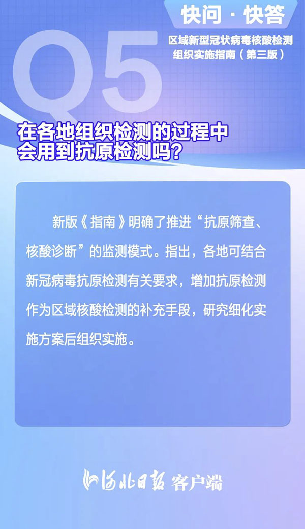 近日,国家卫生健康委发布《区域新型冠状病毒核酸检测组织实施指南(第三版)》,强调核酸检测应该目标明确、有的放矢,不能搞“一刀切”;明确推进“抗原筛查、核酸诊断”的监测模式……