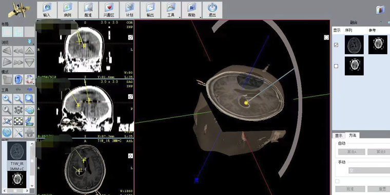 神经外科对于神经导航技术和立体定向手术的运用均已成熟,近年来,率先在省内开展对于颅内肿瘤立体定向穿刺活检、脑脓肿立体定向穿刺置管引流、立体定向下OMMAYA囊置入术、立体定向下颅内血肿穿刺抽吸等技术,积累了丰富的治疗经验。