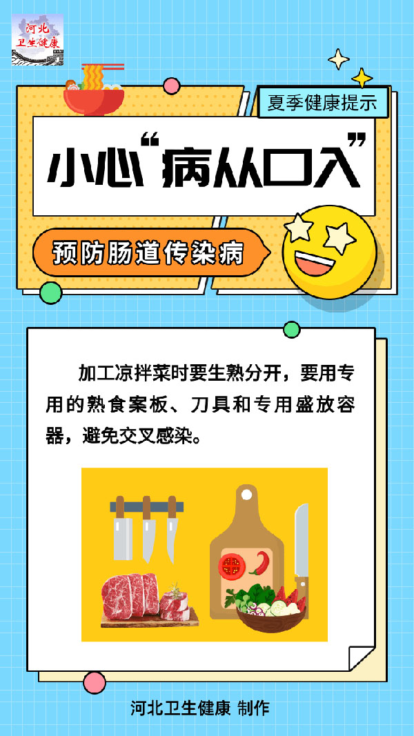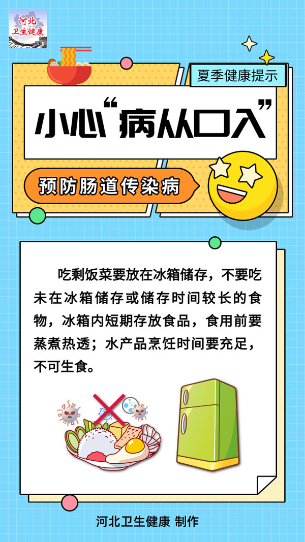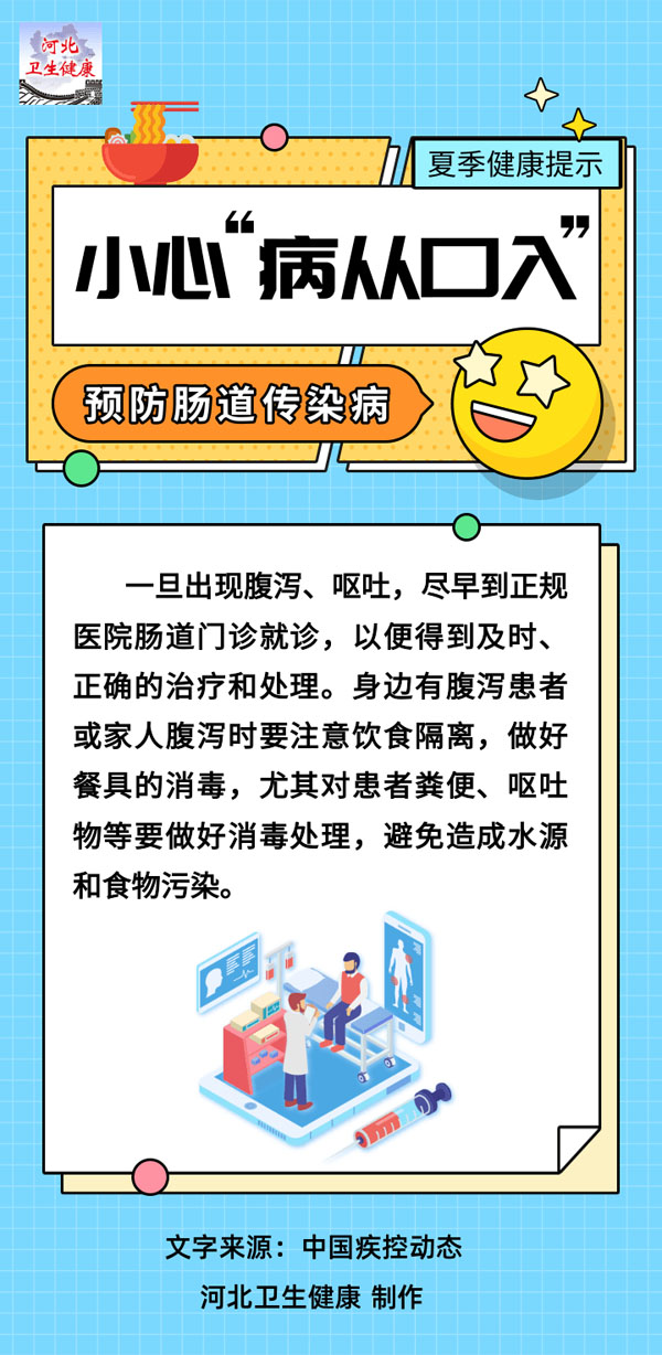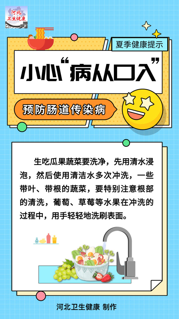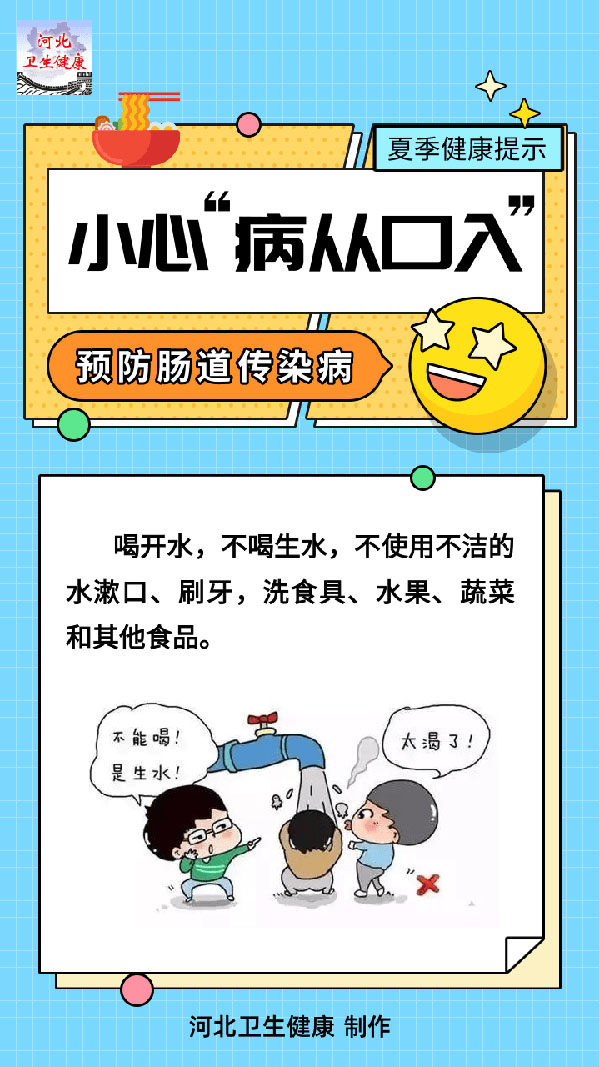 夏季气温高,湿度大,易于细菌生长繁殖,为预防和减少肠道传染病的发生,以下这几方面要注意~