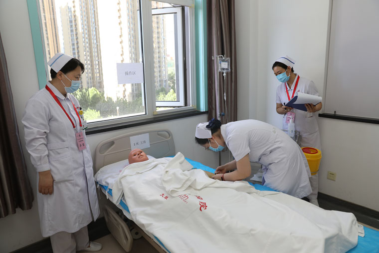 6月24日,护理部在两个院区同步开展了以“秀风采,展技能,强素质”为主题的青年护理人员专业技能竞赛,旨在强化青年护理人员专业技能,培养评判性思维、人文关怀与沟通能力。竞赛得到了院领导、教务处、两院区临床技能中心的大力支持,期间,刘运江副院长多次到比赛现场观摩指导,送来鼓励和问候。