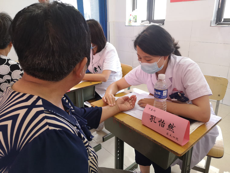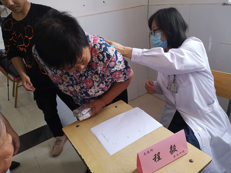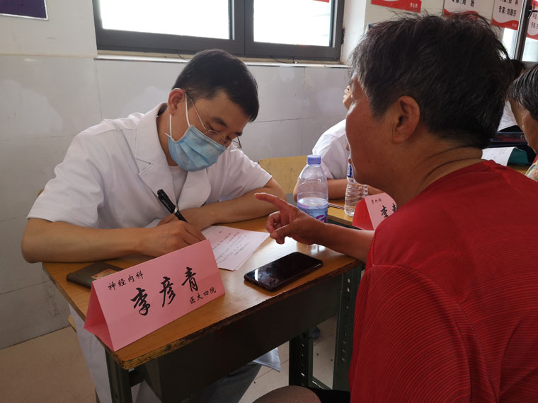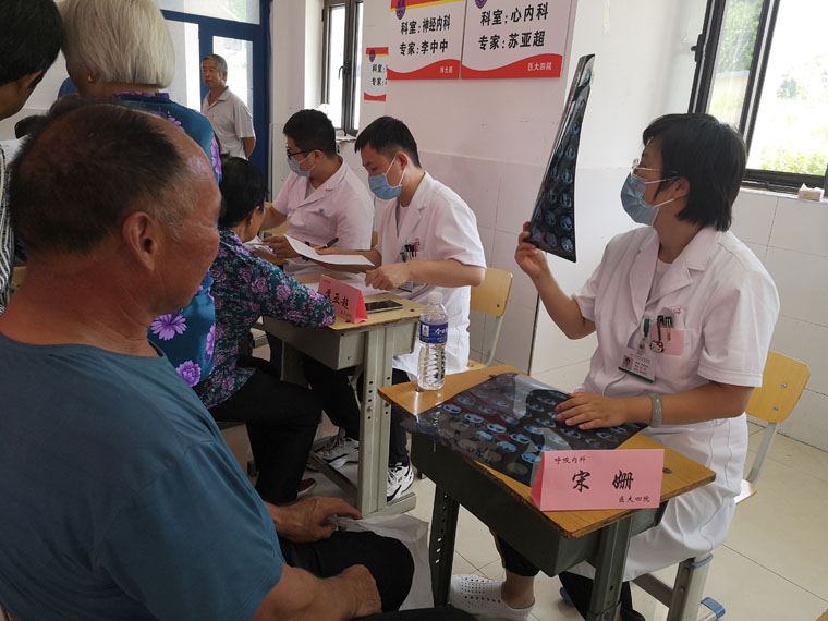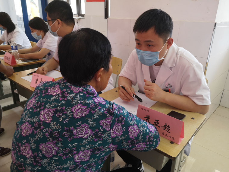 经过长途跋涉,队员们按时抵达指定地点,迅速进入工作状态。面对络绎不绝的群众,大家分工明确、有条不紊,通过认真询问、仔细阅片、听诊号脉,为村民们答疑难、讲知识、定方案,并针对相关健康管理方面注意事项进行宣教。本科学生们还就当地群众高血压、高血糖的发病、诊治等情况开展社会调查。