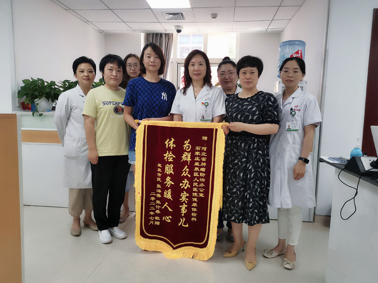 进行乳腺超声和钼靶的免费筛查,排除了相关隐患。为了表达对参与该项目的感谢,张女士将写有“为百姓办实事儿,体检服务暖人心”的锦旗送到河北省肿瘤防治办公室。