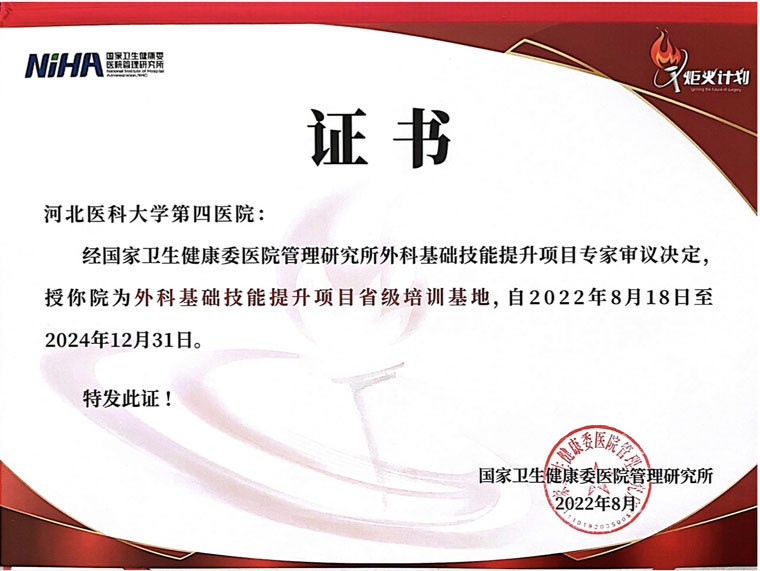 近年来,普外科高度重视本科生、住培学员的外科临床技能培养,通过补充、完善胃肠外科疾病的基本技能训练体系,整合微创手术技能训练模块,并融入肿瘤医院特色,编写并出版《胃肠外科基本技能培训教程》等教材,综合制定了外科基本技能训练手册及考试标准,紧密结合实际,开展标准化和规范化培训。在2019年、2021年河北省住培技能大赛中,果冻传媒