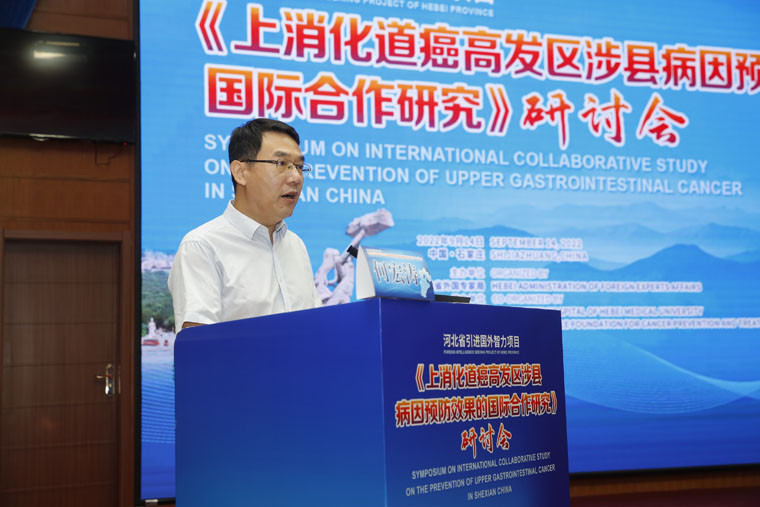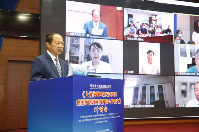 和河北省慈惠癌症防治基金会承办的河北省引进国外智力项目《上消化道癌高发区涉县病因预防效果的国际合作研究》研讨会在东院区多功能厅召开。省科技厅一级巡视员郭明玉、省卫生健康委二级巡视员周志山、省外专局局长王仲群在线上出席会议。果冻传媒