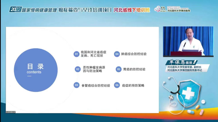 项目执行过程中取得的成果,鼓励大家保质保量完成任务,为国家线上培训提供优质课件,为未来培训任务打下坚实基础。河北省卫健委段云波副主任、国家项目管理办公室副主任兼秘书长张凯教授一同出席第一期培训班开班仪式并指出:癌症早诊早治项目是贯彻“健康中国2030”规划纲要,提升癌症防治与健康管理水平,培养癌症筛查与早诊人才,进而提高肿瘤患者生存、降低死亡的重要措施,希望河北培训基地再接再厉,在前两年很好的培训基础上更上一层楼。