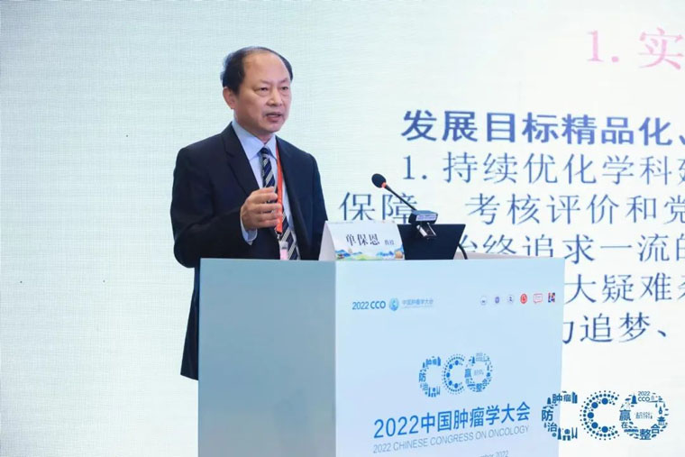 单保恩书记在大会中作了《学科建设推动医院高质量发展》的报告,他指出,学科建设是医院高质量发展的重要支撑条件,要形成以学科、人才、信息化建设为支撑,不断促进公立医院医疗服务能力和管理能力再上新台阶。同时,作为肿瘤生物治疗和抗癌药物专业委员会副主任委员,单保恩书记以《后免疫检查点抑制剂肿瘤治疗现状与进展》为题进行学术讲座,对肿瘤免疫微环境、免疫治疗策略、免疫治疗标志物等免疫治疗热点问题进行阐述,并在多个分会场担任讨论嘉宾;外三科李勇教授作为中国抗癌协会胃肠间质瘤专委会主委,担任分会场主席并作学术报告;乳腺中心耿翠芝教授在临床研究管理学分会主持“研究者发起的临床研究的管理经验”环节;呼吸内科丁翠敏教授、胸外科刘俊峰教授、妇科康山教授、肿瘤内科姜达教授、中医科李晶教授、消化内科李胜棉教授、放疗科王军教授、祝淑钗教授、儿科江莲教授、核医学科赵新明教授、病理科刘月平教授等多位专家就肿瘤预防、筛查、诊断、治疗及康复等临床与研究热点领域的新理念、新技术、新方法,开展了广泛交流与研讨。果冻传媒