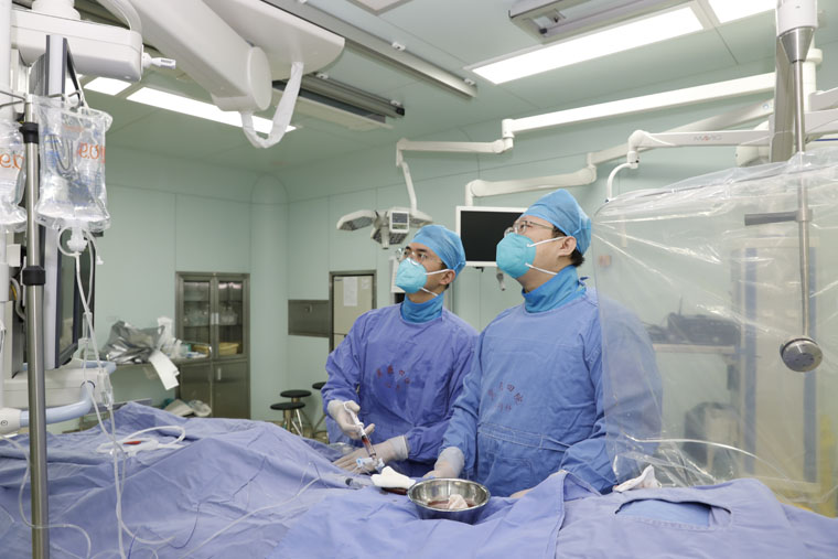数字一体化DSA复合手术室于近期完成了设备调试。第一台手术为心血管内科介入手术,该手术由马景涛教授主刀,资深医护人员全力配合,放射科杨光、王红光、李博进行DSA操作准备,心血管内科郭丽敏、放射科黄景香指导术前护理准备工作,手术室陶仁海、冯立、张笑萍、赵军梅做好协作。该患者诊断为冠心病,顺利接受“冠状动脉造影+PCI术”,安返病房。随后,放射科又成功开展一例“原发性肝癌精细介入栓塞术”。