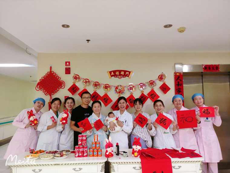 东院产科组织在院孕产妇、家属以及坚守在一线的医护人员,一起“抱福娃、写福字、迎福年”。