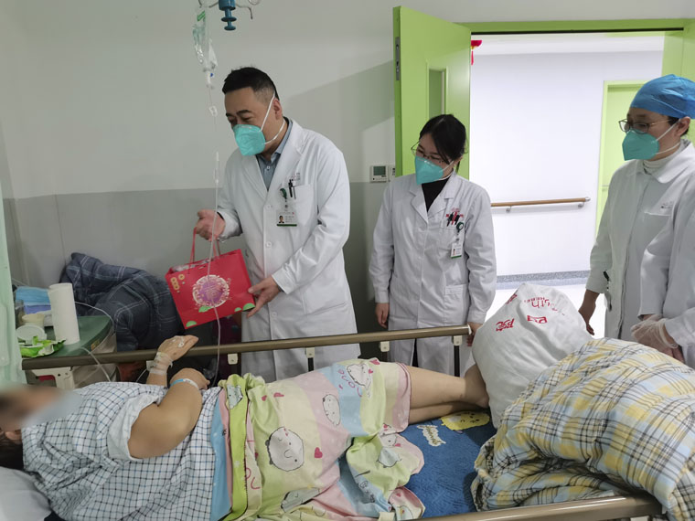 除夕夜,肿瘤免疫科医护人员为患者送去新年礼物和衷心祝福,温暖患者的心扉。