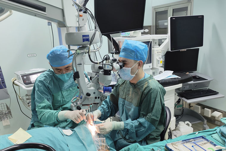 春节前夕,眼科医生为一名新生血管性青光眼患者行青光眼手术。