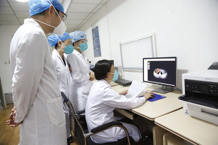 “进行规范化肿瘤诊治,让更多的患者在第一时间得到最佳治疗方案,是刻不容缓的任务”。为此,樊晓妹和科室同仁根据现状,迅速确立了“手把手带教、一对一带徒”的援疆目标,转“输血”为“造血”,通过开展肿瘤靶区勾画、教学查房、学术讲座、病例讨论等多种方式,使大家更快掌握诊疗规范及基本技能操作。巴州人民医院放疗科医生范晓宇是樊晓妹的徒弟,从基本的妇科检查,看CT核磁片子,到放疗靶区勾画,樊晓妹手把手教导,范晓宇认真学习、逐步成长,成为能够独当一面的合格医生。