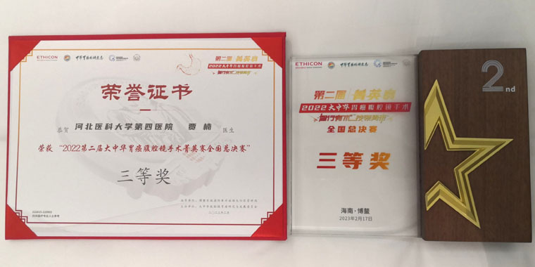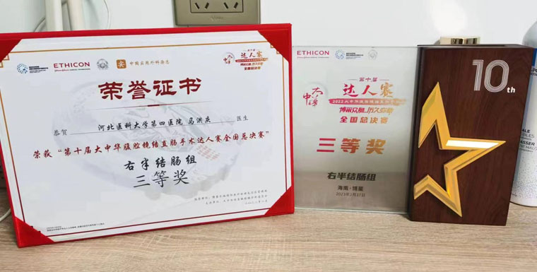 外二科丁源一、马洪庆两位主治医师顺利通过河北省内海选、太行赛区决赛、北中国区决赛,作为仅有的两位获得一等奖的选手,代表北中国区参加全国总决赛。在决赛中,两位青年医师以全程英文讲解展示了典型手术视频案例,得到郑民华教授、兰平教授等来自全国结直肠外科手术领域知名专家的一致好评,分别获得结肠组三等奖的好成绩,彰显了外二科医师扎实的临床基础知识和精细的外科操作技巧。
