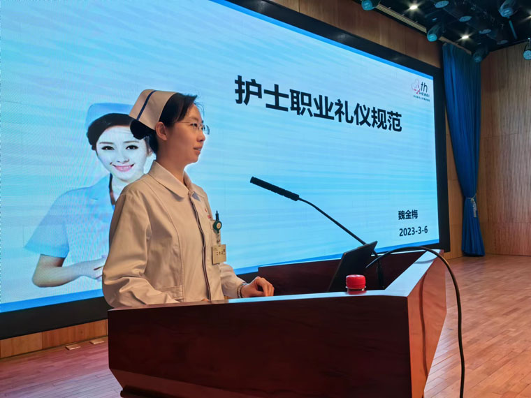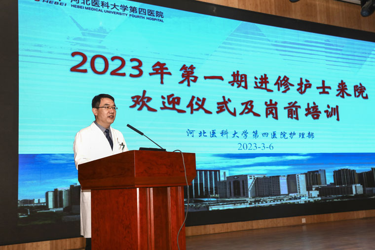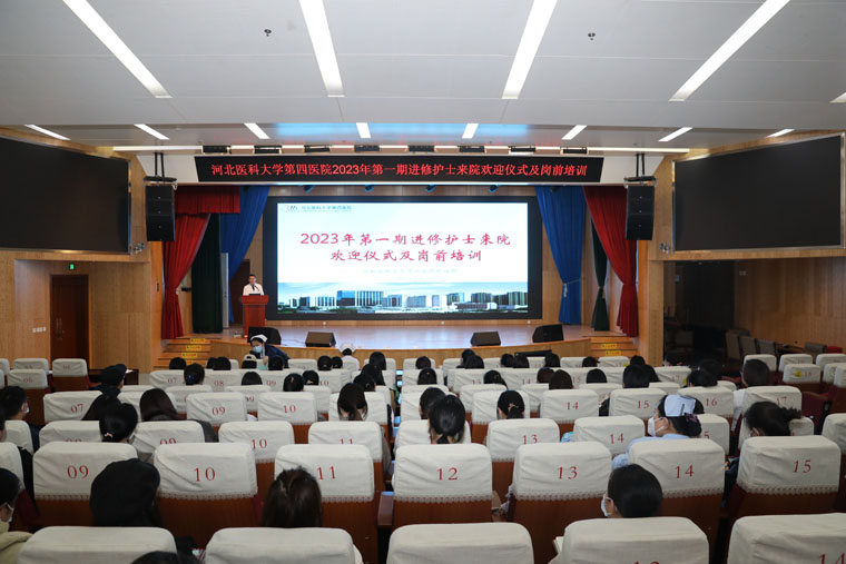 在本部新医技病房楼报告厅举办2023年第一期进修护士欢迎仪式,副院长何宏涛、护理部主任李来有,护理成员以及来自全省各地的59名学员参加,护理部副主任赵晓燕主持仪式。
