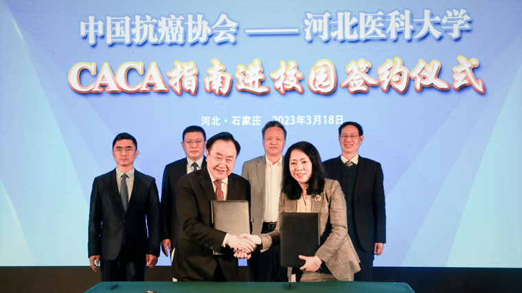 承办的CACA指南进校园工作推动会(河北站)在石家庄召开,中国抗癌协会与我省7所医学院校签订《中国肿瘤整合诊治指南》(CACA指南)进校园合作协议。