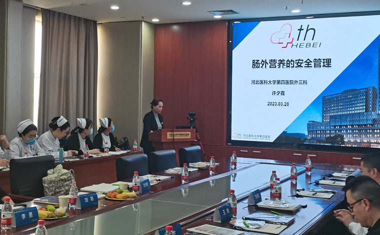 许夕霞主任护师就“肠外营养的安全管理”,结合相关行标,从肠外营养的配方、规范化配置以及规范输注等方面进行现场培训。沧州市中西医结合医院胃肠外科王铁主任做了“肿瘤营养示范病房建设之路”的工作汇报,刘永增主任分享了“脂肪乳的四世同堂”。