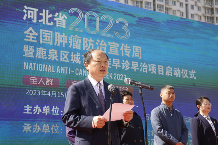 为提高全社会癌症防控意识,营造全民防癌抗癌的良好氛围,4月16日,河北省2023全国肿瘤防治宣传周走进社区暨鹿泉区城市癌症早诊早治项目启动仪式在市政广场举行,主题是“癌症防治、全面行动——全人群、全周期、全社会”。