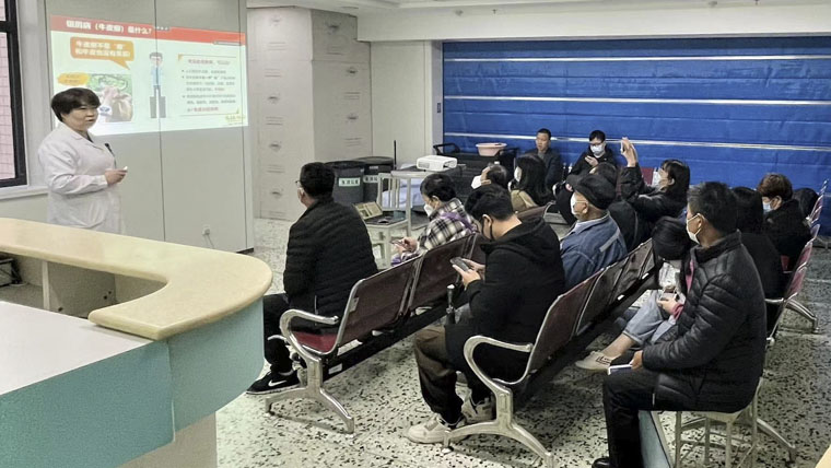 活动中,张燕主任在皮肤科候诊区给前来咨询的患者进行“了解银屑病和银屑病日常治护”科普讲座,详细介绍不同人群银屑病治疗方案的选择,包括儿童、孕产妇、合并肿瘤、结核、肝炎以及肾功能不全等患者。她介绍了基础治疗包括口服外用药物、窄谱紫外线、PUVA等以及当前比较热门的生物制剂包括IL-17(司库其尤单抗、依珠奇单抗等)、IL-12/23抑制剂乌司奴单抗、TNF-a抑制剂(依那西普、英夫利西单抗、阿达木单抗等),以及新型口服药物JAK抑制剂托法替尼、PDE-4抑制剂阿普斯特等,帮助银屑病患者得到更精准的治疗。
