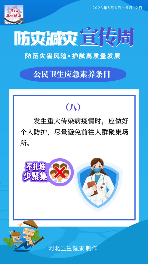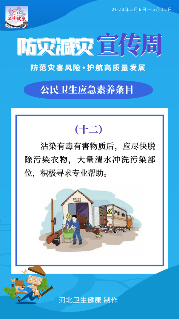 为普及卫生应急知识和基本技能,提升公民有效防范应对各类突发事件的意识和能力,国家卫生健康委员会应急办公室编制了公民卫生应急素养条目。条目共12条,涉及突发公共卫生事件应对,突发事件紧急医学救援、中毒及核辐射应急处置等基本知识和要求。