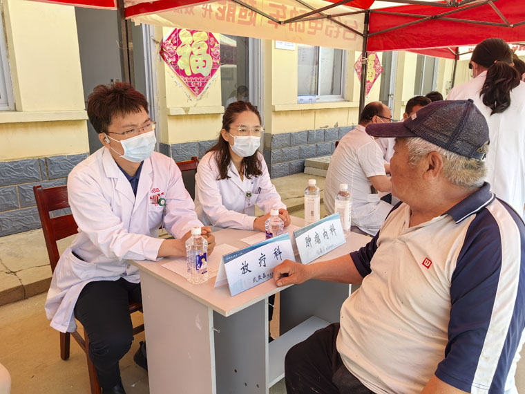 驻南皮对口支援医疗队的肿瘤内科刘嘉寅、呼吸内科王韵、外三科安昭杰、骨科戴慕巍、神经内科周亚竹、放疗科武亚晶与县医院的同事在南皮县刘八里乡张庄村共同开展了义诊宣教主题活动,共接受患者群众咨询200余人次,发放防癌抗癌科普知识宣传单200余份,得到当地群众的纷纷好评。