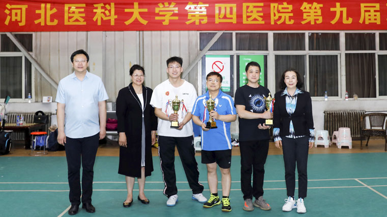 本届比赛以党总支为单位进行组队,五个党总支共组成19支队伍,采用国际最新羽毛球比赛规则,进行抽签和小组赛分组,项目为男双和混双的团体战。在比赛中,队员们全神贯注、斗志昂扬、奋勇争先,起跳扣杀、网前截杀、后场吊球、追身球、放小球……场上高潮迭起、扣人心弦,精彩的表现引来观众阵阵喝彩,大家在拼搏中深厚了友谊,收获了快乐。李晓玲副书记代表院领导对大家的拼搏精神表示充分肯定,对获奖队伍表示祝贺。她希望大家要更加积极地参与到医院组织的各项文体活动中,从而以饱满的精神状态投入本职工作,发扬四院人“特别能吃苦,特别能拼搏”的精神,立足岗位做出更多贡献。随后,三位院领导为获奖团队颁发奖杯。