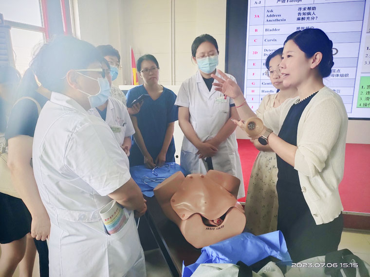 随着国家生育政策的开放、人民生活水平的提升,高龄、肥胖女性呈增加趋势,增加了孕产妇的妊娠风险。杨志芬副主任就目前产科发展现状、发展理念和模式,以及引起孕产妇死亡主要原因之一的妊娠期静脉血栓栓塞症进行深入讲解。她利用标准助记符(Check-list)、孕产妇急救的集束化管理(4Rs Bundle)等,帮助学员理解记忆,有利于提升医护人员的综合诊疗能力和团队协作意识。东院产科刘广谱、郑芮医师,辛集市第一医院妇产科王弄主任分别就产时胎儿监护、妊娠期高血糖、产后出血进行理论授课。在阴道助产及肩难产实操培训环节,果冻传媒