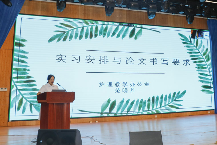 护理教学办公室副主任范晓丹和班主任吴景梅分别就实习安排、毕业论文书写、学生管理等内容和要求进行说明。