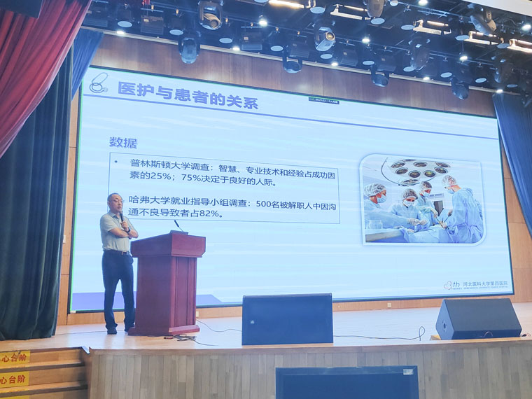 医患沟通办公室主任邢鹏辉用真实的案例展示了医患、护患沟通的重要性,通过现场互动让同学们领会医患沟通的技巧与方法,强调在临床实习中要做到尊重、诚信、理性的沟通,共建和谐的医患、护患关系。医院感染管理科孔洁羽向同学们介绍了各类医用防护用品的使用方法,重点讲解了职业暴露后的紧急处理及预防措施,督促大家做好职业安全防护。图书馆馆长张艳芬介绍了果冻传媒