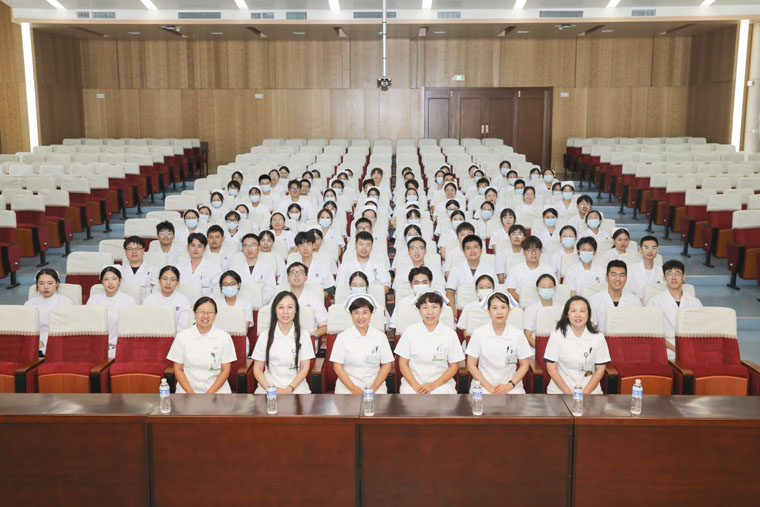 2020级护理班级“三个老师”见面会暨名誉班主任主题班会在新医技病房楼报告厅举行。名誉班主任、护理部主任李来有,学业导师、护理部副主任陈璐、刘风侠,护理教学办公室主任李志红、副主任范晓丹,班主任吴景梅、李慧娟及全体护理专业学生参加。