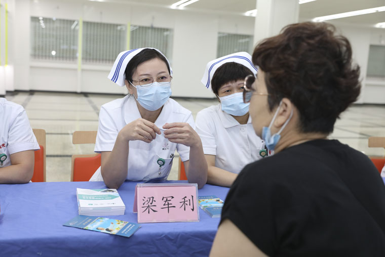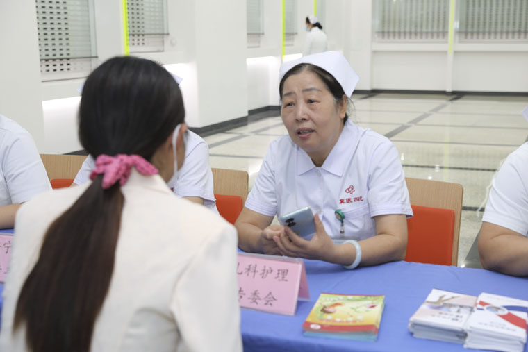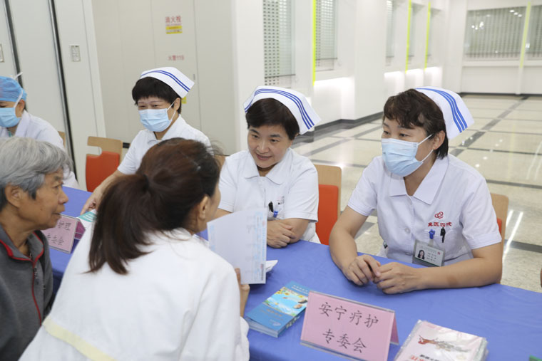 来自肿瘤、安宁疗护、内科、外科、妇产科、儿科、手术室护理专业委员会的多位主委或副主委在本部院区门诊大厅举行义诊活动,为现场300余名患者和家属提供专业的咨询、帮助,发放宣教资料,普及健康知识。