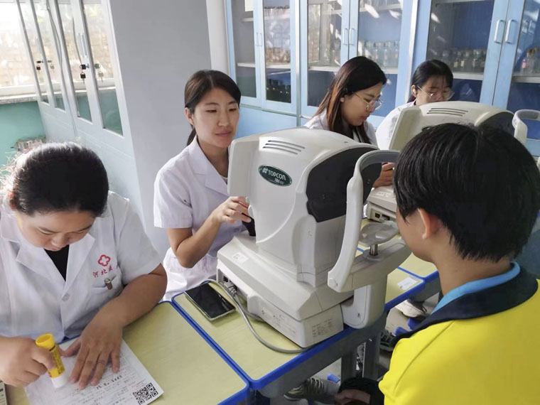 眼科联合骨科、口腔科、营养科、疼痛康复科、心内科、产科等医务人员对长安区和正定新区的幼儿园、小学、中学及大中院校7000余名学生的视力、屈光、口腔、血压、身高、体重、脊柱等方面进行筛查,旨在为我市儿童青少年近视防控及其生长发育提供有效的预防干预措施,帮助其健康成长。