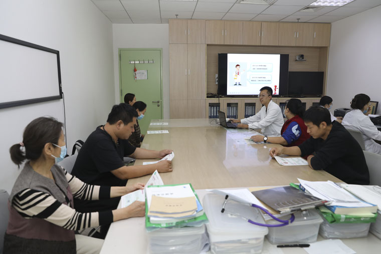在健康科普讲座中,医务人员通过PPT的形式,围绕脑卒中、预防卒中的方法和如改变生活方式等进行详细讲解,希望大家注重饮食健康,保证饮食种类多样化,多食用蔬菜、水果、低脂奶制品及总脂肪和饱和脂肪含量较低的食物;要适当运动,一般建议每周3—5天,每次30—45分钟,可选快走、慢跑、骑自行车等有氧方式;药物治疗要规范,做到定期复查评估等减少卒中风险发生。为做好患者全流程管理,科室制定了健康卡,卡片中记录了对患者用药及康复锻炼指导和复诊的时间。宣传册的发放,有利于进一步帮助大家科学认识神经内科的诊疗工作、卒中的防治等。