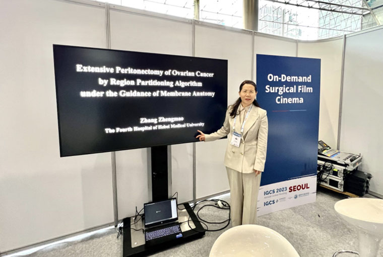 晚期卵巢癌患者的治疗一直都是妇科肿瘤学界的重点和难点,张正茂教授团队攻艰克难,使晩期卵巢癌的R0(肉眼无残留病灶)切除率达到95%以上,平均无进展生存期达到了26.5个月。本次IGCS 2023会议循环展示播放的《膜解剖理论指导下的晚期卵巢癌广泛性腹膜切除术》是卵巢癌R0手术彻底性的充分体现,使卵巢癌这一高难度的手术实施更加精准、彻底、高效,展现了果冻传媒