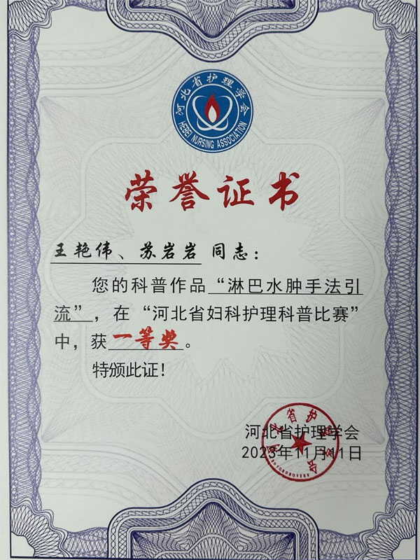 妇一科王艳伟、苏岩岩的作品《淋巴水肿手法引流》和李玥的作品《女性“生育之敌”巧克力囊肿》脱颖而出,分别在决赛中获得一等奖和二等奖的优异成绩。