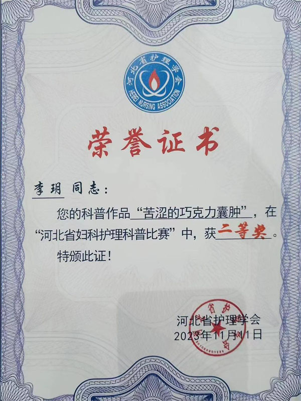 作品《淋巴水肿手法引流》作品内容新颖、科学实用,既提高了临床护士对于淋巴水肿问题的认识,又展示了实用的引流手法,为解决临床实际问题提供了切实可行的解决办法;作品《女性“生育之敌”巧克力囊肿》通过深入浅出的讲解,具有延展性地向女性群体普及其危害和相应治疗措施等知识。