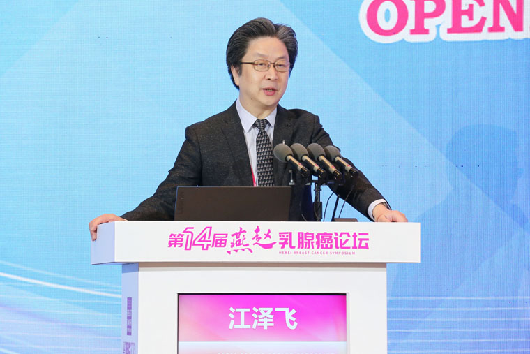 中国临床肿瘤学会副理事长兼秘书长、中国抗癌协会乳腺癌专委会候任主委江泽飞教授代表两个专委会祝贺会议的圆满召开,并表示将一如既往地支持河北省乳腺肿瘤领域的工作,与省内同仁一起将中国乳腺癌诊治指南深入推进,取得规范诊治的良好效果。