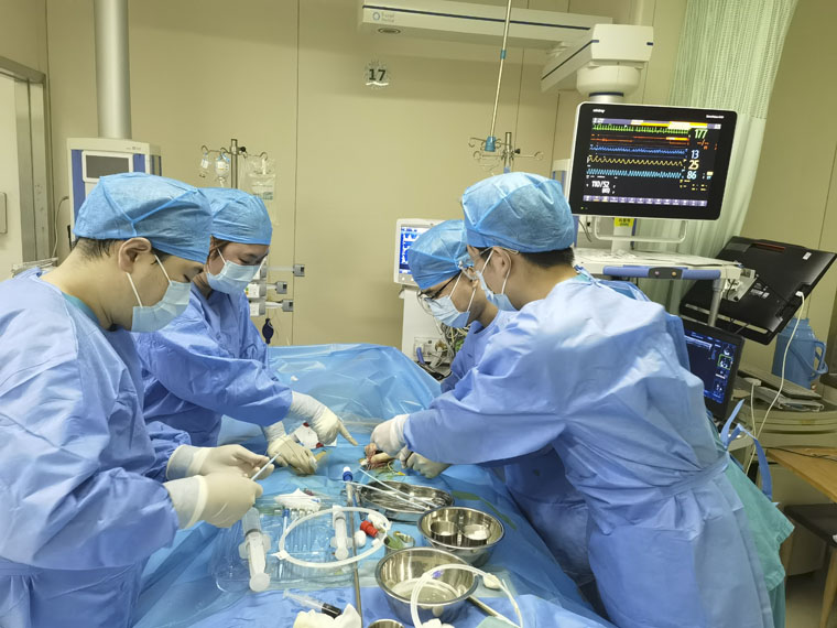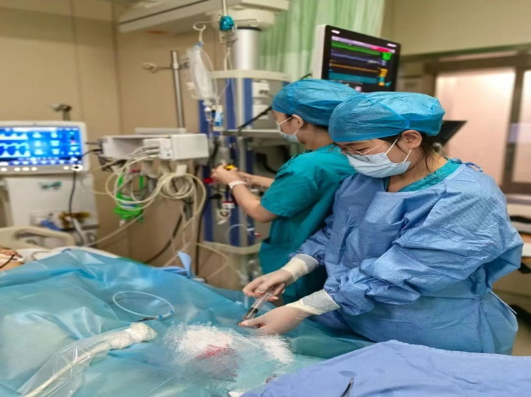 首次开展儿童ECMO,儿童血管不同于成人,需要更加精准的血管评估、更加严密的治疗方案。通过血管评估、物品准备、上机准备、管路预冲、穿刺置管等,仅1小时,医务人员将ECMO成功运转,患儿循环趋于稳定。为充分降低心脏的后负荷,ECMO团队又紧急植入IABP辅助治疗,患儿情况得到明显改善。
